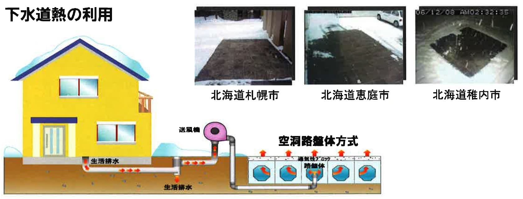 右の図のように、建物の廃熱、地中熱、下水道熱などを